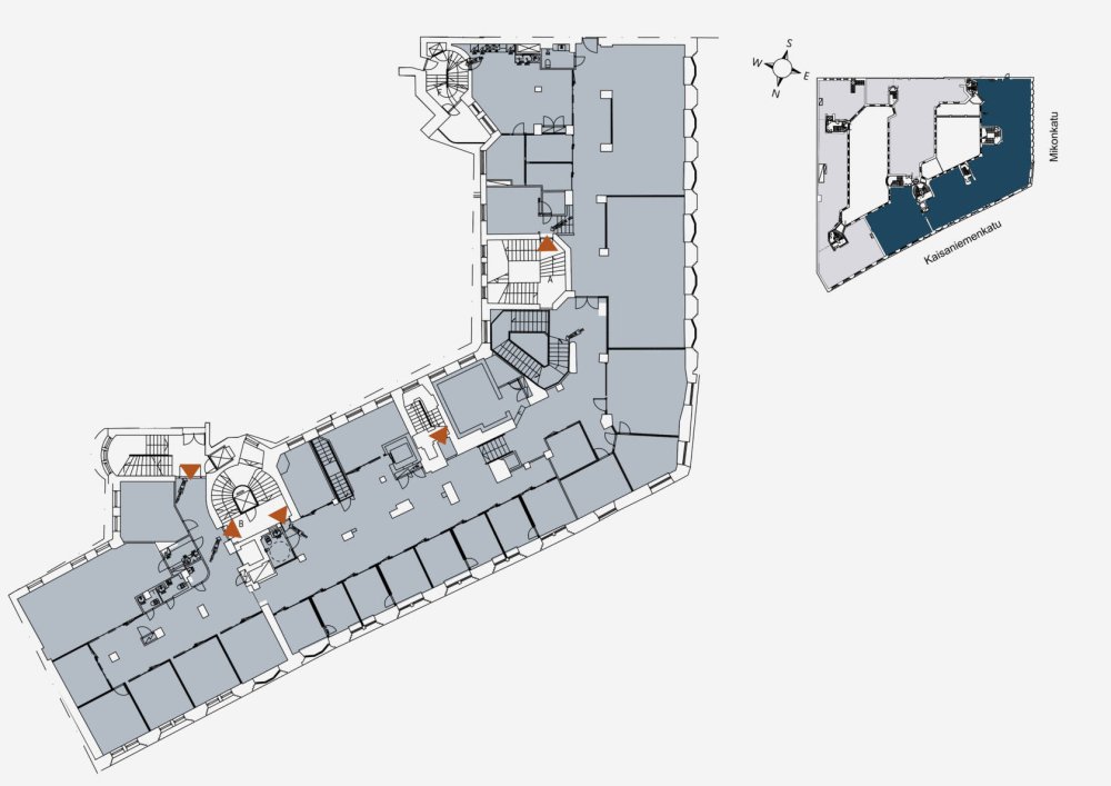 Toisen kerroksen toimistotila. Kiinteistö on läpikäynyt mittavat saneeraukset, viemärit, julkisivu, katot. Hyvä sijainti ydinkeskustassa.