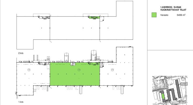 Vuokrattavana varastotila Vuosaaren Logistiikkakeskuksesta. Vuokrattavat varastotilat vapautuvat sopimuksen mukaan. Vuokrataan 9 metriä korkeaa terminaali/varastotilaa sisältäen 197 m2:n toimisto/sosiaalitilat. Lattiakantavuus on 5 000 kg/m2 ja tilassa on 12 lastaustaskua, lastauslaituri sekä ajoluiska mahdollistaen sisäänajon. Tilat vapautuvat sopimuksen mukaan. Tiloihin on mahdollista rakentaa varastohyllyt. Helsingin Sataman, Tullin ja satamaoperaattoreiden palvelut sijaitsevat samassa logistiikkakeskuksessa. Vuosaaren Logistiikkakeskuksen alueella on runsaasti pysäköintitilaa. Porttirakennuksessa sijaitsee pysäköintihalli.