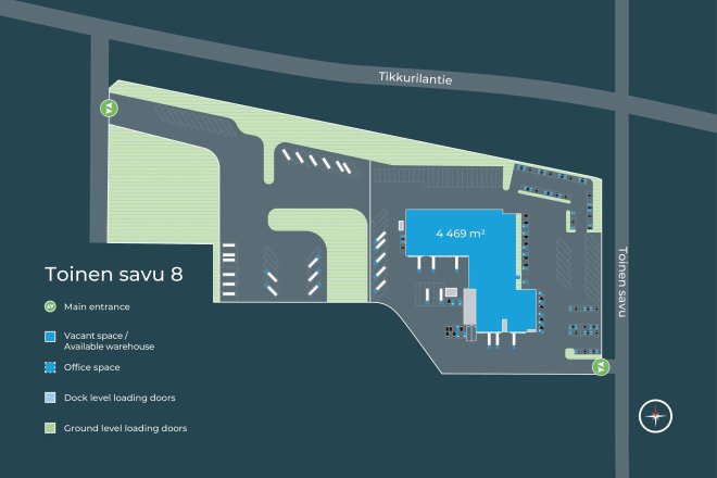 Toinen Savu 8 on Vantaan Aviapoliksen alueella sijaitseva varikko-/korjaamo-/tuotantokiinteistö. Rakennuksessa on kattavien korjaamotilojen lisäksi toimisto-, tauko- ja sosiaalitiloja. Korjaamo- ja tuotantotoiminnan tarpeet on huomioitu rakennuksessa mm. useilla korkeilla nosto-ovilla ja sisäänajomahdollisuudella. Kiinteistön iso tontti soveltuu hyvin raskaan kaluston säilytykseen ja pihavarastointiin.
